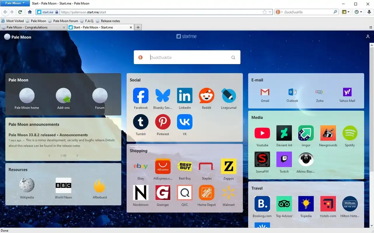 Pale Moon bietet die optimale Kombination aus Anpassbarkeit, Stabilität und Geschwindigkeit – ganz nach dem Motto „Dein Browser, deine Art“. Er entstand als Abspaltung von Mozilla Firefox und verfügt über diverse sorgfältig ausgewählte Funktionen und Optimierungen . Der Hauptunterschied liegt im Betriebsmodus: Firefox nutzt den Mehrprozessmodus, Pale Moon hingegen den Einzelprozessmodus. Er verwendet die Goanna-Browser-Engine und bietet in Zusammenarbeit mit start.me eine individuell anpassbare Startseite. Standardmäßig wird DuckDuckGo anstelle von Google oder Yahoo verwendet. Auch die Geolokalisierung erfolgt über die IP-API anstelle der Google-Dienste.